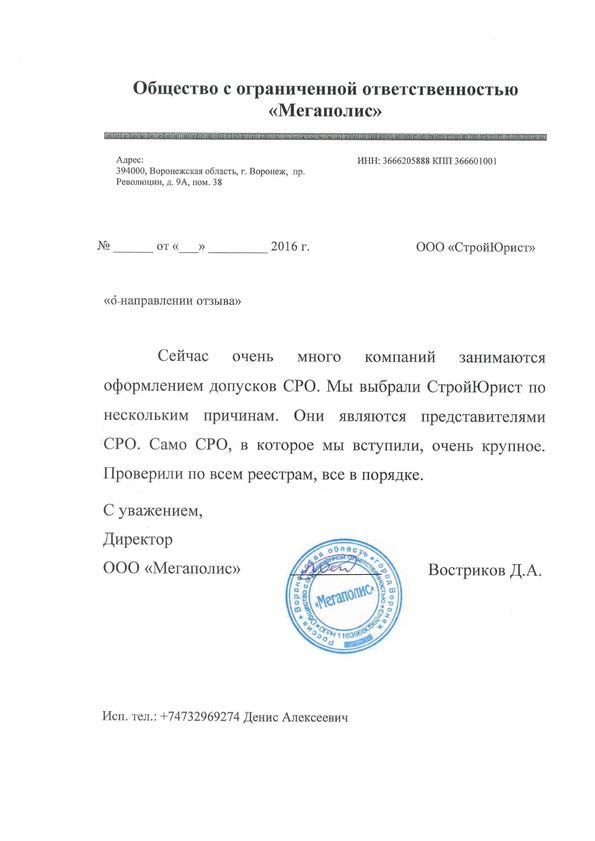 Отзывы клиентов "СтройЮрист" по вступлению в СРО в Тольятти