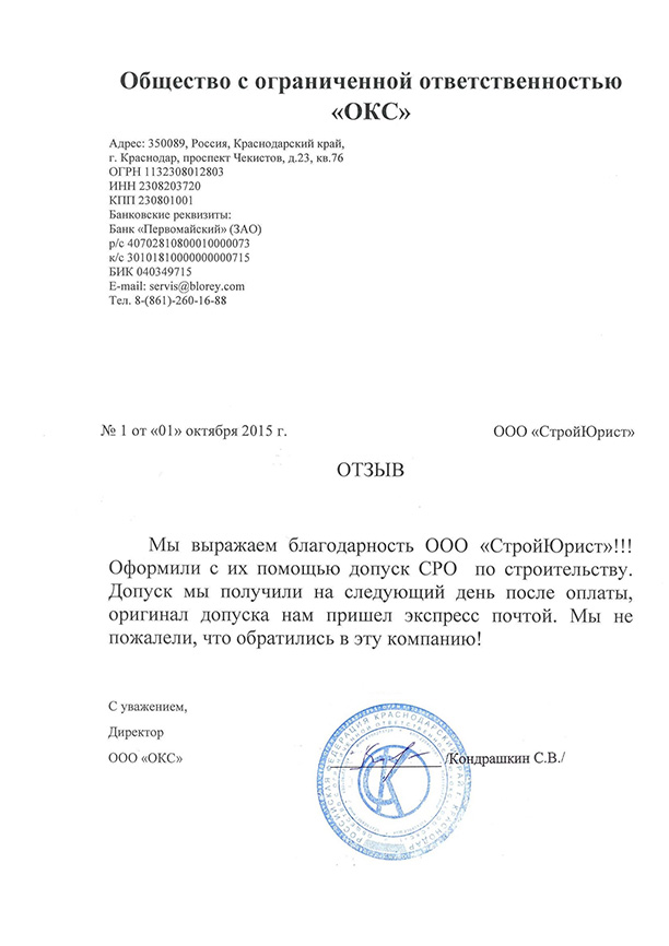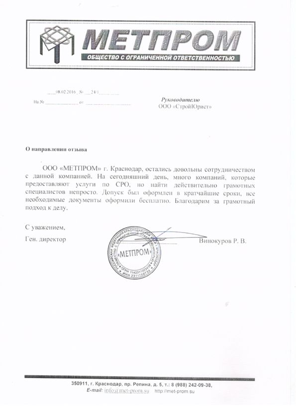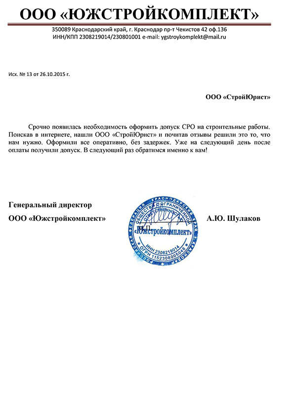 Отзывы клиентов "СтройЮрист" по вступлению в СРО в Тольятти