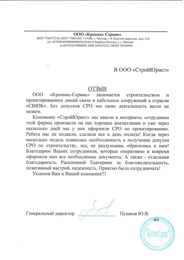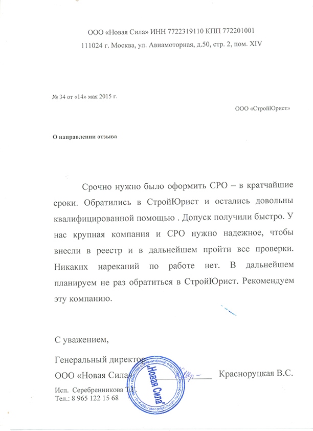 Отзывы клиентов "СтройЮрист" по вступлению в СРО в Тольятти