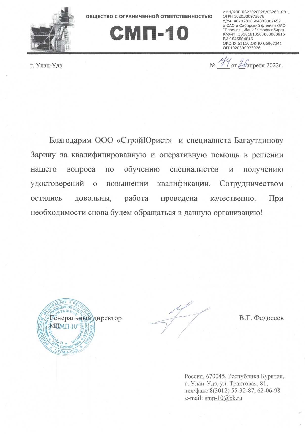 Отзывы клиентов "СтройЮрист" по вступлению в СРО в Тольятти