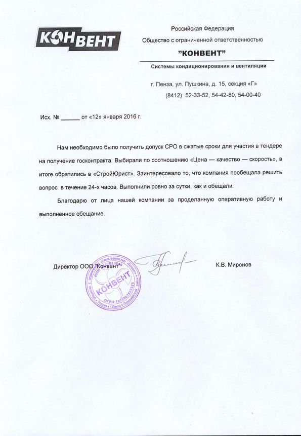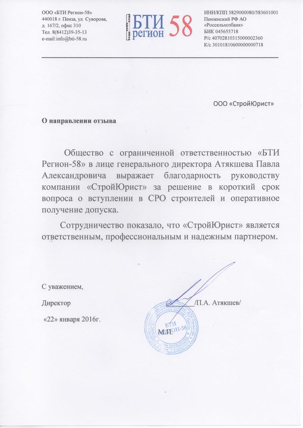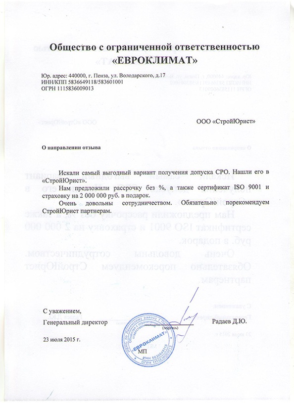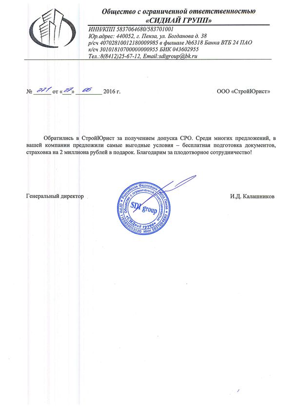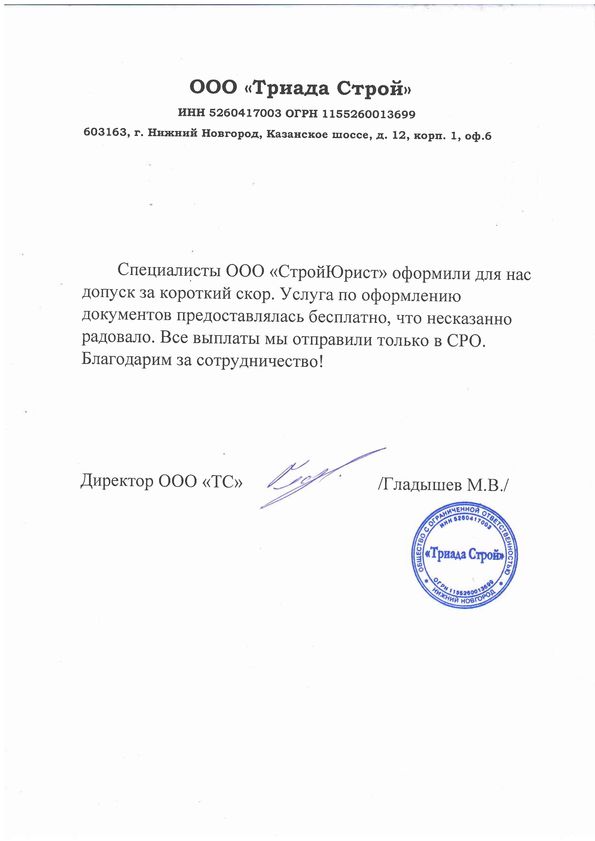 Отзывы клиентов "СтройЮрист" по вступлению в СРО в Тольятти
