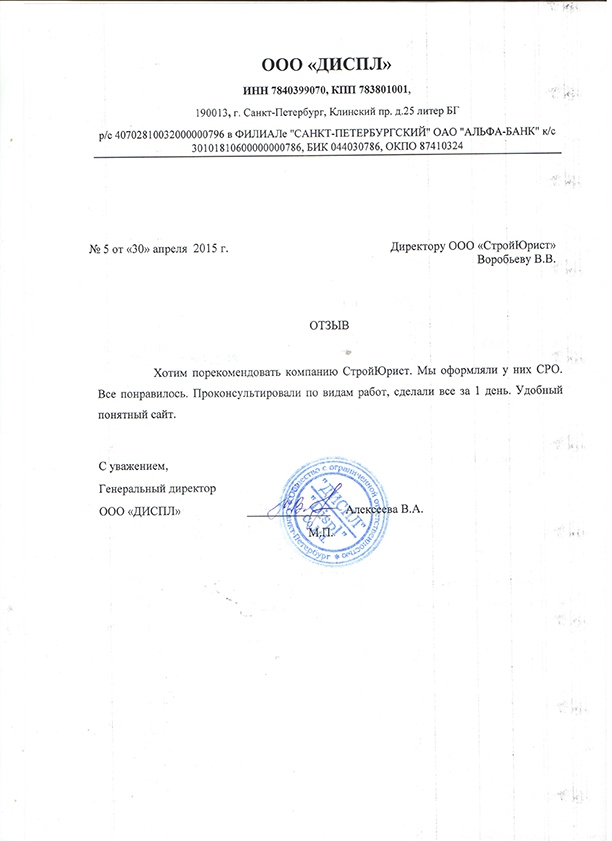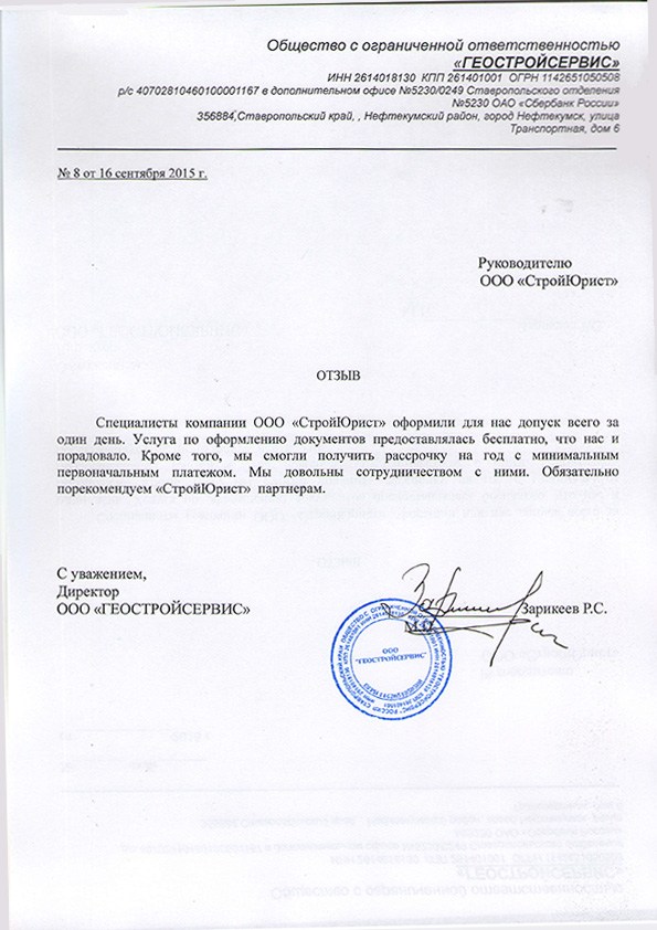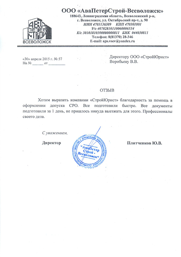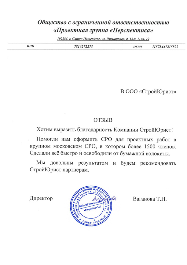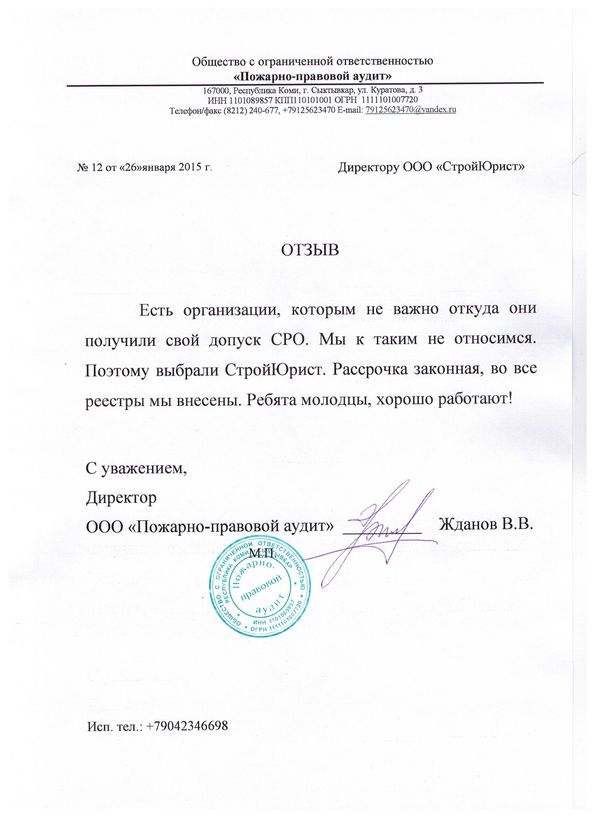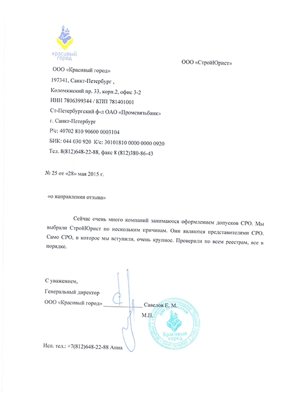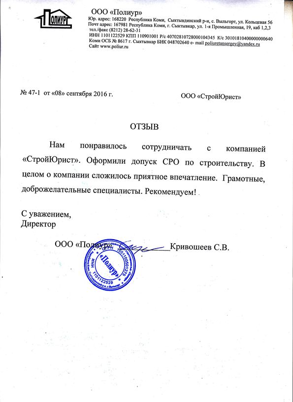 Отзывы клиентов "СтройЮрист" по вступлению в СРО в Тольятти