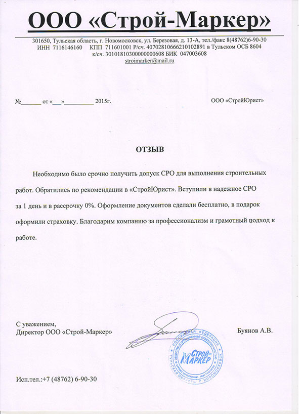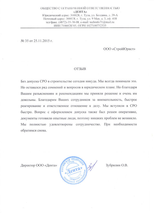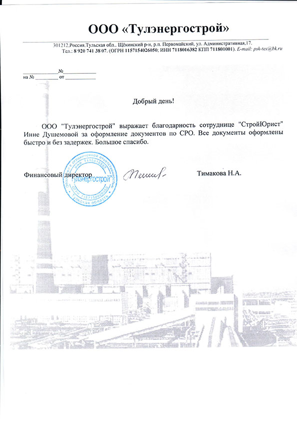 Отзывы клиентов "СтройЮрист" по вступлению в СРО в Тольятти