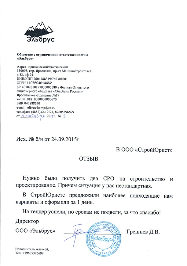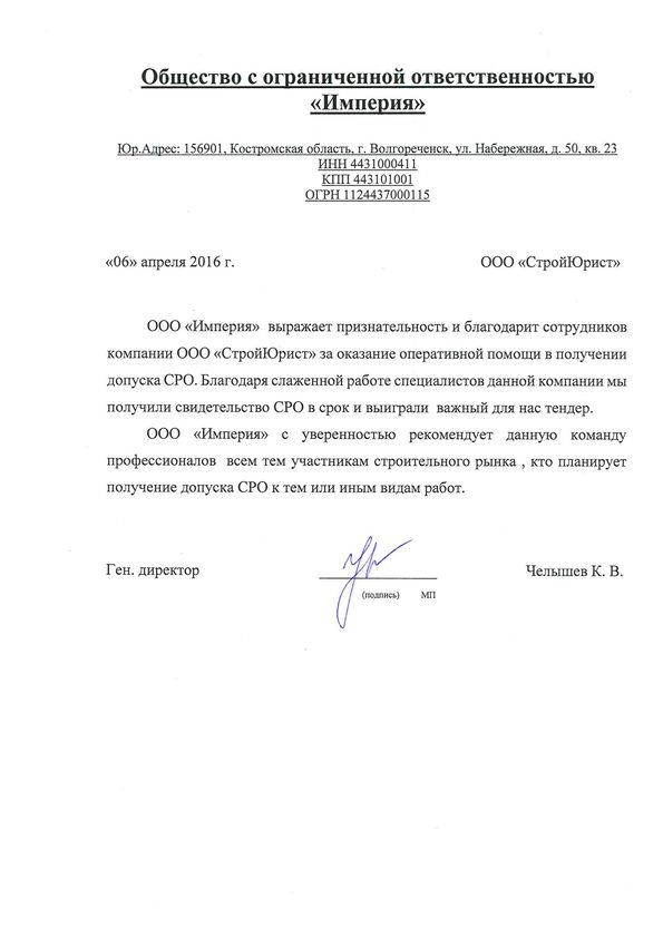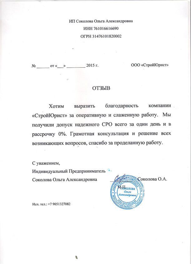 Отзывы клиентов "СтройЮрист" по вступлению в СРО в Тольятти