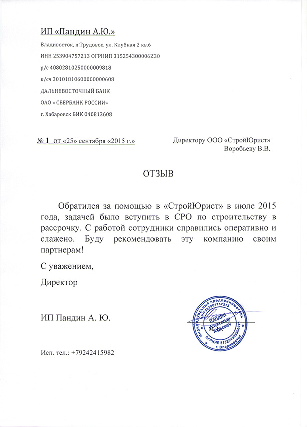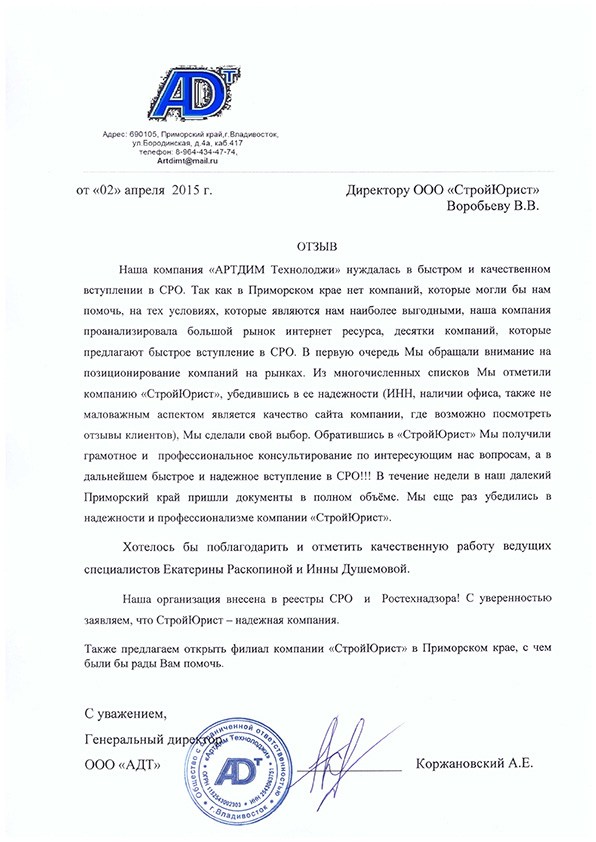 Отзывы клиентов "СтройЮрист" по вступлению в СРО в Тольятти