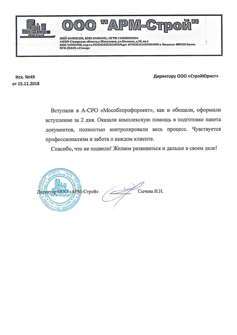 Отзывы клиентов "СтройЮрист" по вступлению в СРО в Тольятти