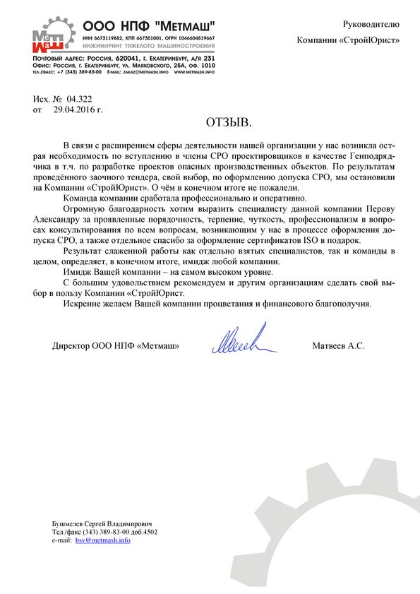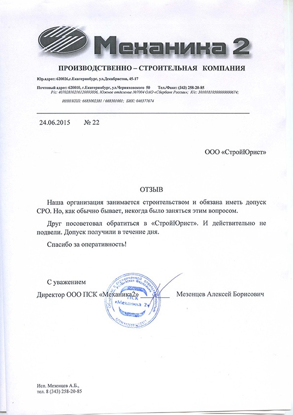 Отзывы клиентов "СтройЮрист" по вступлению в СРО в Тольятти