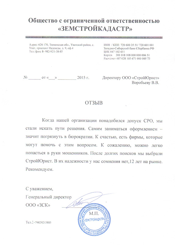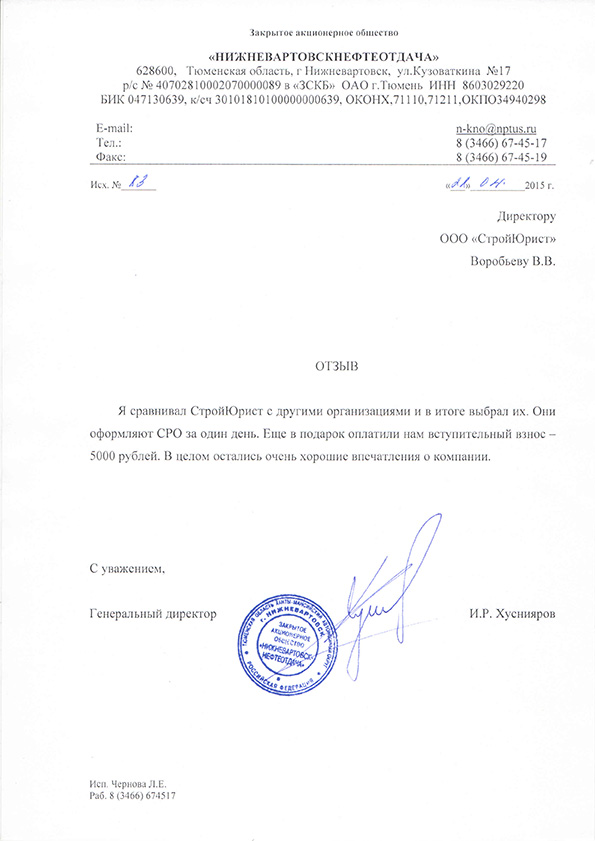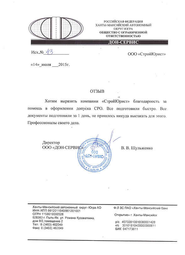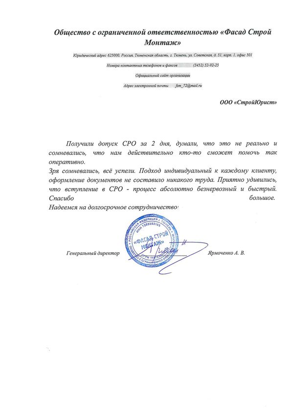 Отзывы клиентов "СтройЮрист" по вступлению в СРО в Тольятти