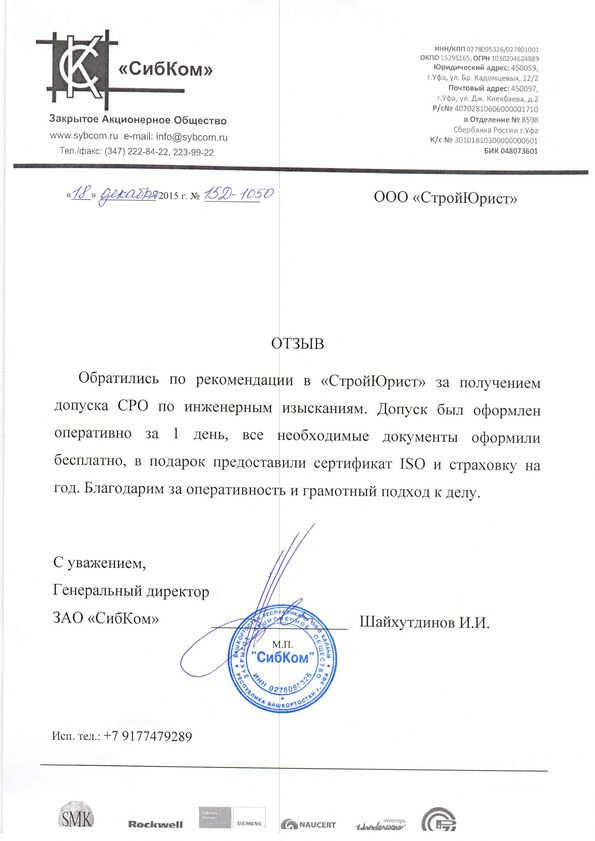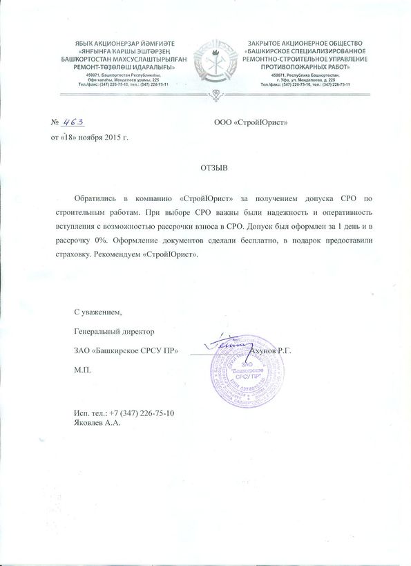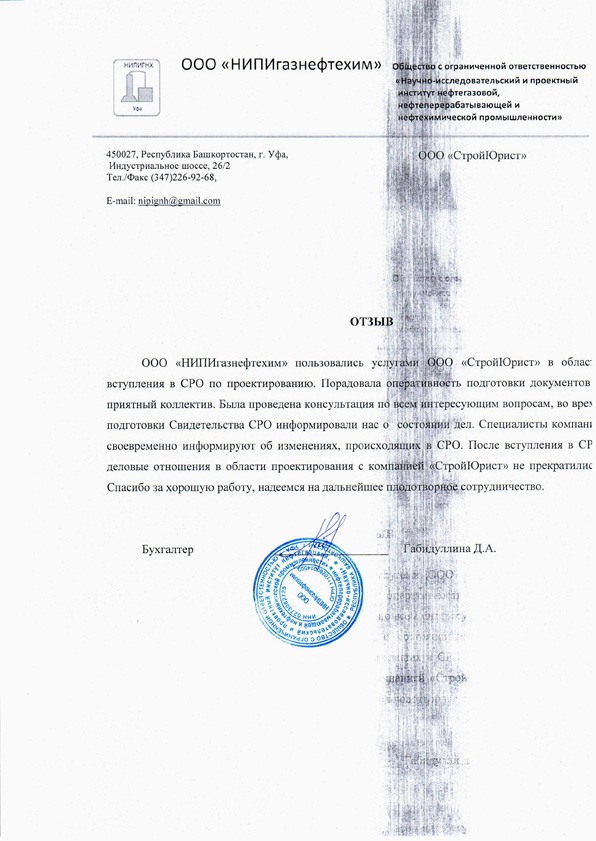 Отзывы клиентов "СтройЮрист" по вступлению в СРО в Тольятти
