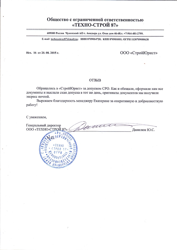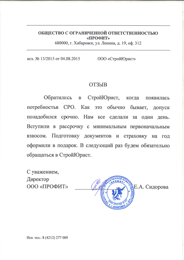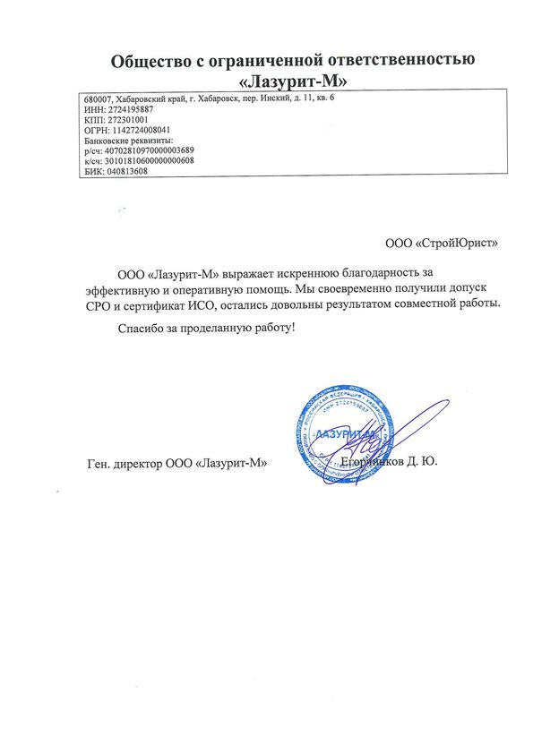 Отзывы клиентов "СтройЮрист" по вступлению в СРО в Тольятти