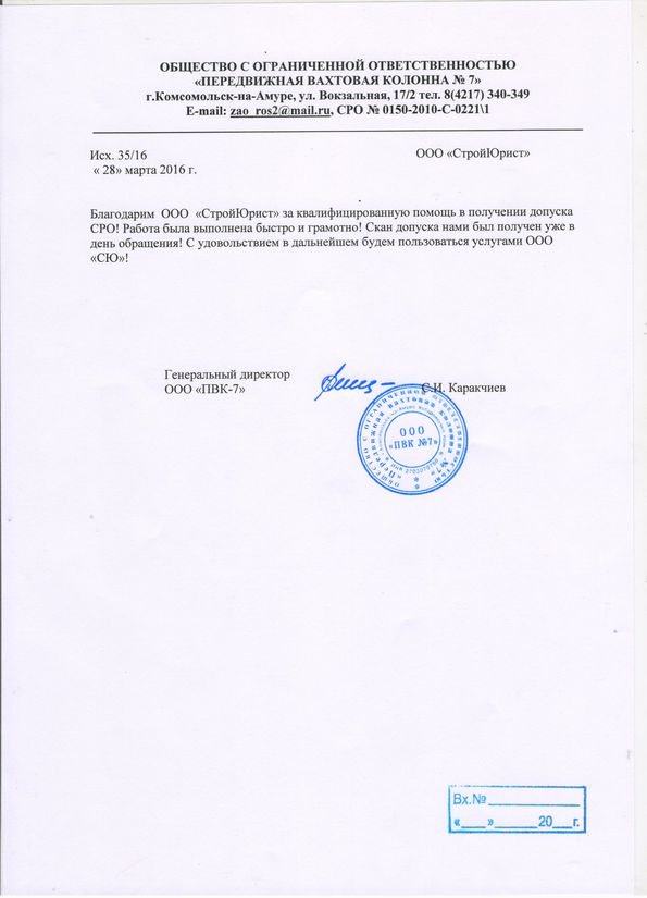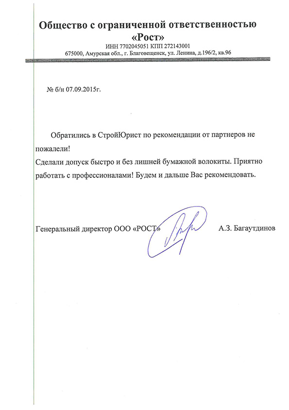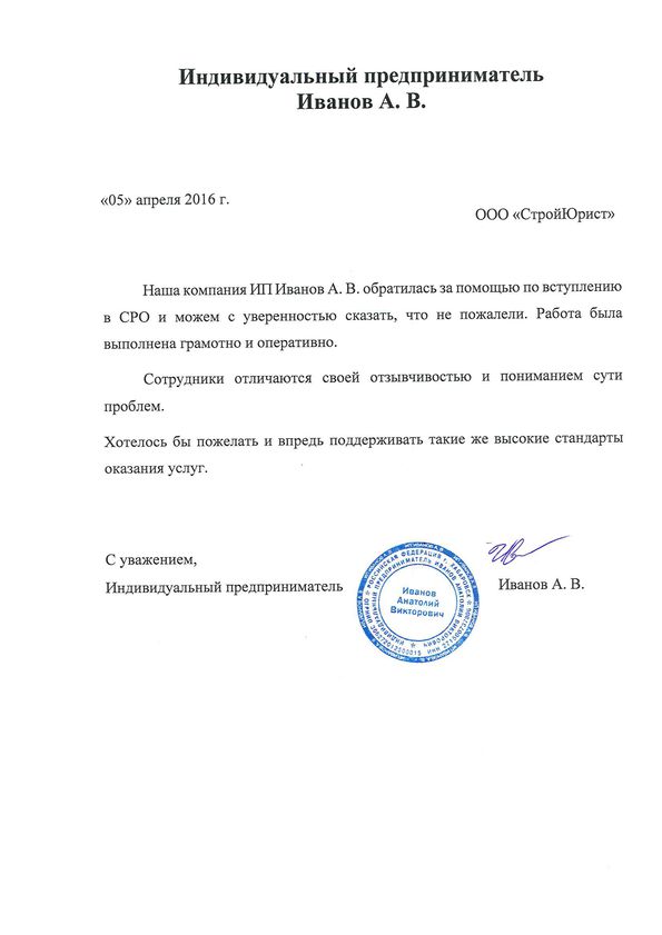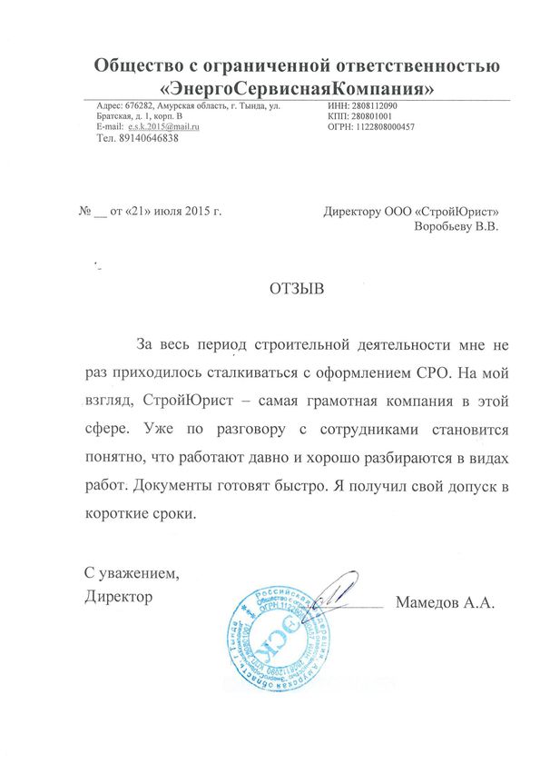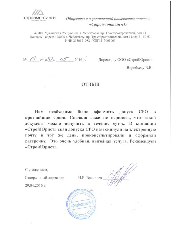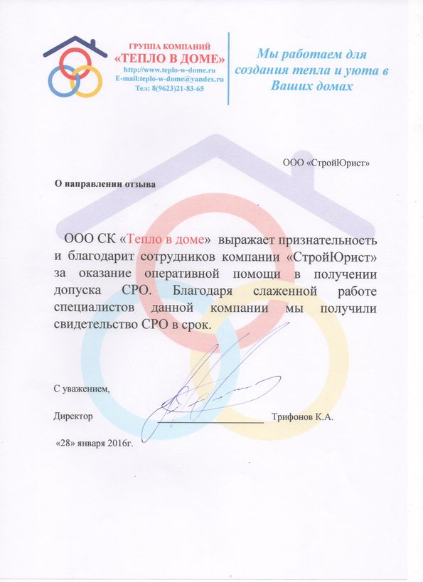 Отзывы клиентов "СтройЮрист" по вступлению в СРО в Тольятти