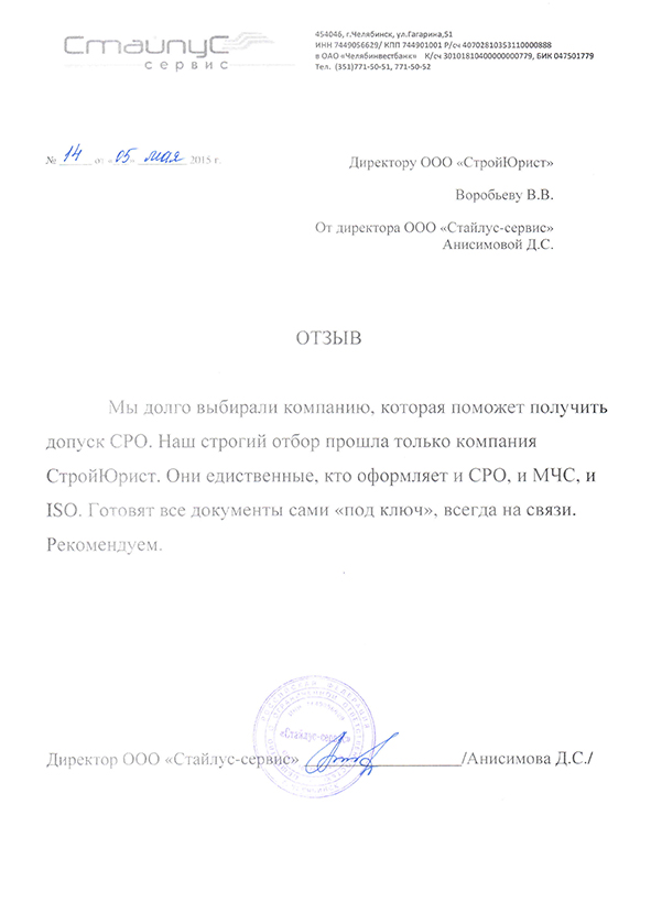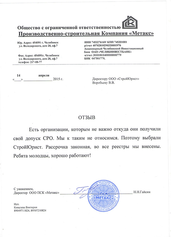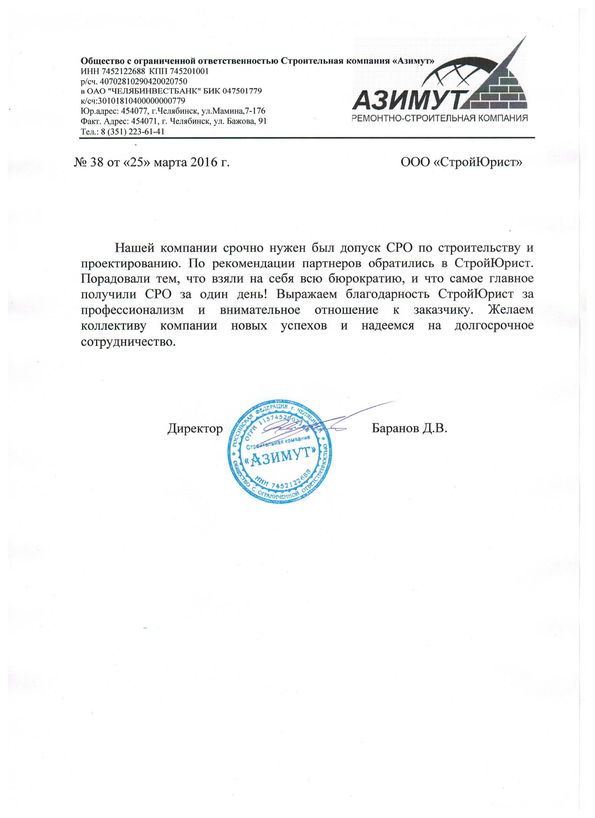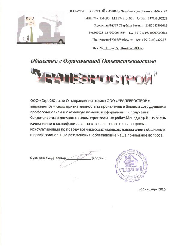 Отзывы клиентов "СтройЮрист" по вступлению в СРО в Тольятти