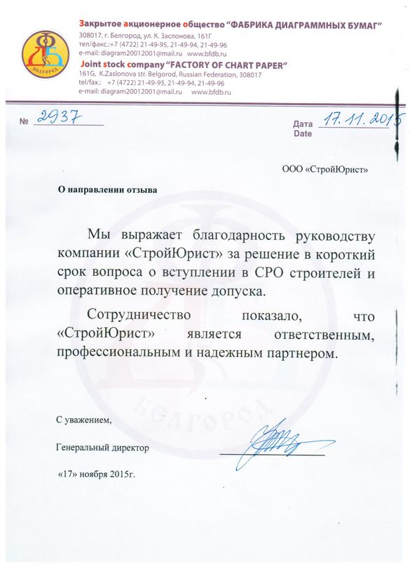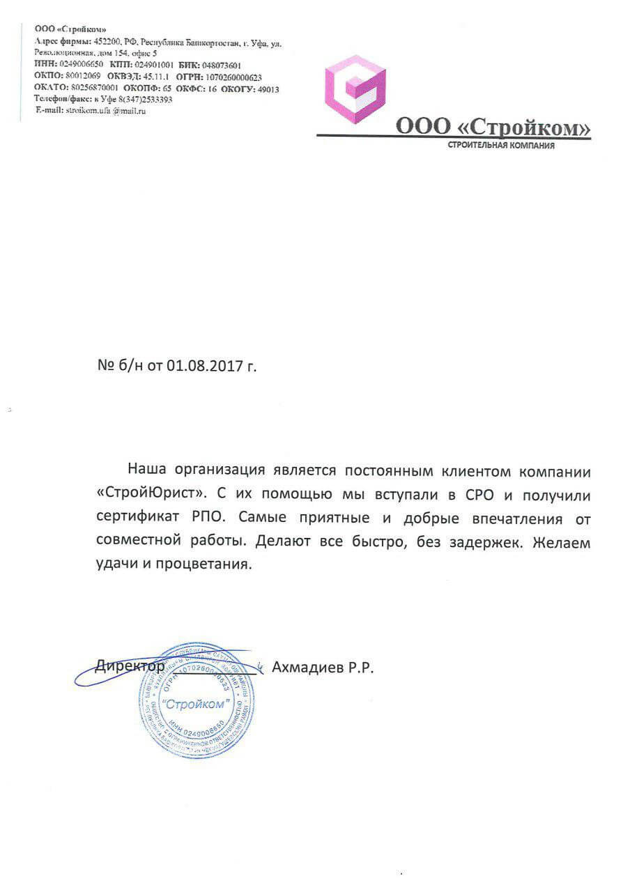 Отзывы клиентов "СтройЮрист" по вступлению в СРО в Тольятти